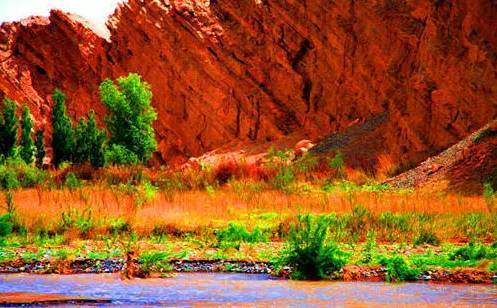 红河谷的基本情况。白杨河进入吐鲁番盆地后,向西南流动,从红山桥到巴依托海的白杨河峡谷内,冲出了一条美丽的河湾,形成了我们现在看到的天山红河谷。红河谷里,黑色的第四纪沉积物覆盖第三纪的红色泥岩,被河水切割形成峡谷后,壁陡如削,红黑分明,两岸山体呈现出红色,宛如一条红色的河谷,蜿蜒十几公里,被徒步爱好者称为新疆黄金徒步休闲线路。
